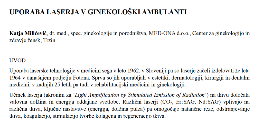 Uporaba laserja v ginekološki ambulanti